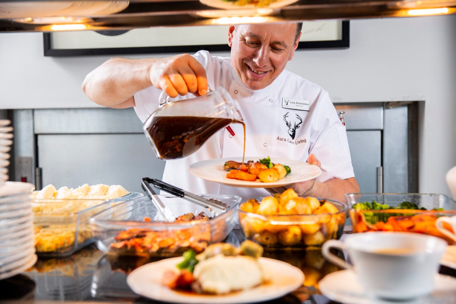 Our Chefs offer fresh, seasonal menus with are changed on a daily basis for lunch and dinner. Each menu has a full list of allergies and we ensure that we cater to everyone’s individual allergies and dietary needs. Whatever the need, we ensure that we will cook something delicious and exciting for those living at Kings Lodge.